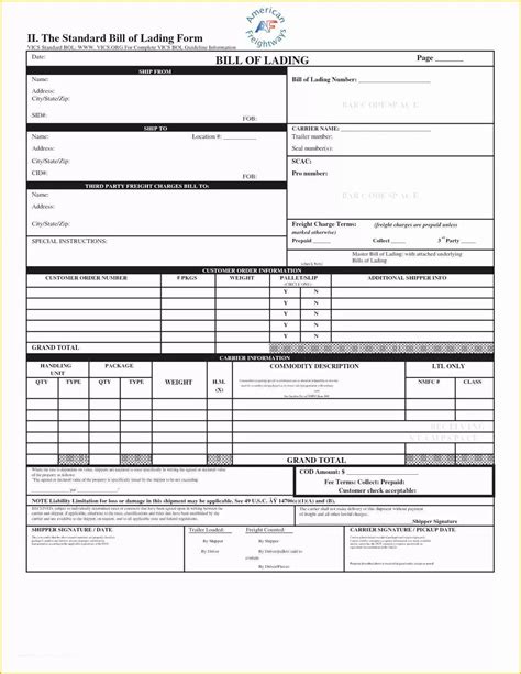 Free Printable Bill Of Lading Templates [Excel, Word, PDF]