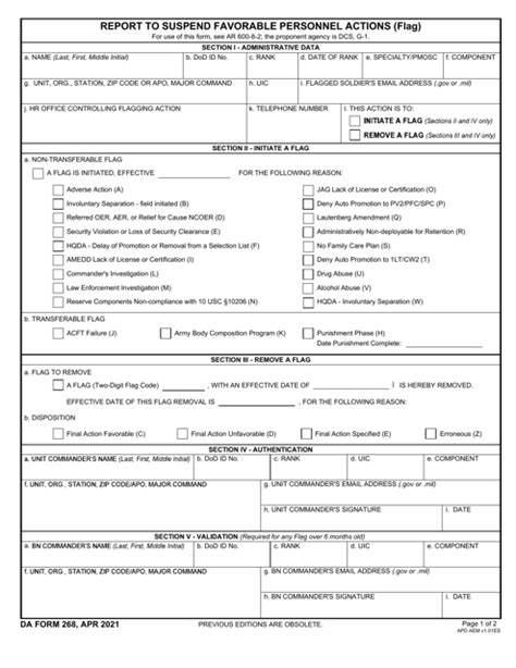 Dd Form 268 . A flag is the temporary suspension of favorable personnel actions such as promotions or special duty assignments. Da form 268, report to suspend favorable personnel actions (flag), is a form used for adding or removing flags from a soldier's.
